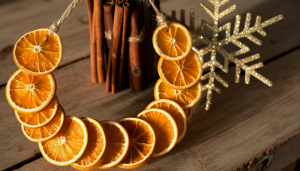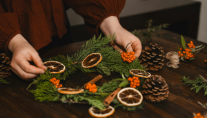 Avant d’acheter de nouvelles décorations, faites le tour de vos placards et des ressourceries locales. Guirlandes en papier recyclé, suspensions d’oranges séchées et bâtons de cannelle, centres de table composés de branches, pommes de pin et bougies de récup…